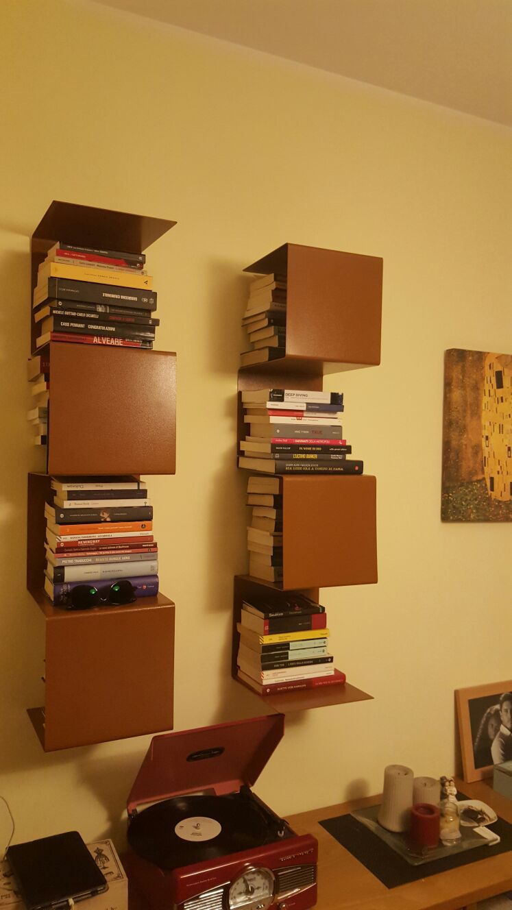 Libreria sospesa dal design moderno e contemporaneo. Realizzata con lastre in metallo sottili ma resistenti. Dona stile e carattere ai vostri ambienti.