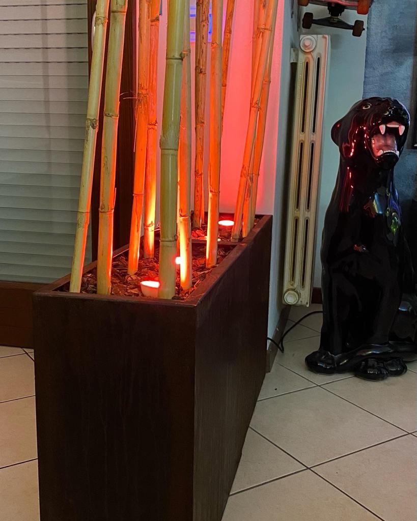 Complemento d’arredo vaso porta bambù. Realizzato in metallo effetto ruggine graffiato. Dona un’impronta moderna e industrial agli ambienti domestici e uffici.